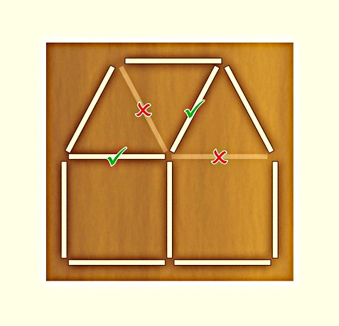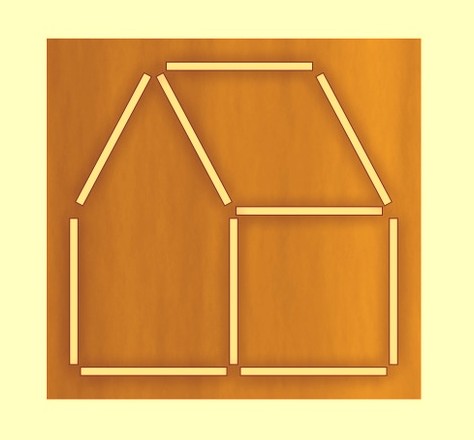 Tau tereikia perkelti du degtukus taip, kad namas pasisuktų į kitą pusę.