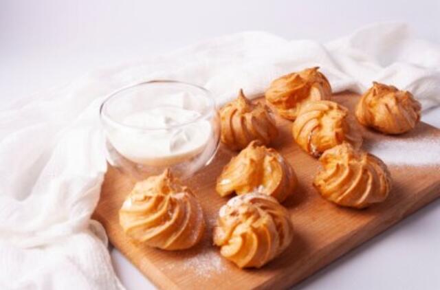 Tešlą sukrėsti į konditerinį maišelį su dantytu antgaliu.