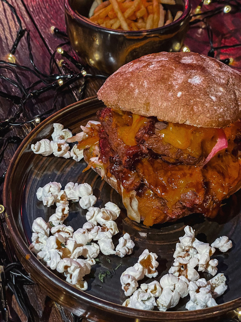 Gastrobaro lankytojai, mėgstantys „Gaisrinėje“ vyraujantį grilio patiekalų skonį, įvertins vieną iš naujienų – sumuštinį su rūkytu jautienos krūtininės brisketu.