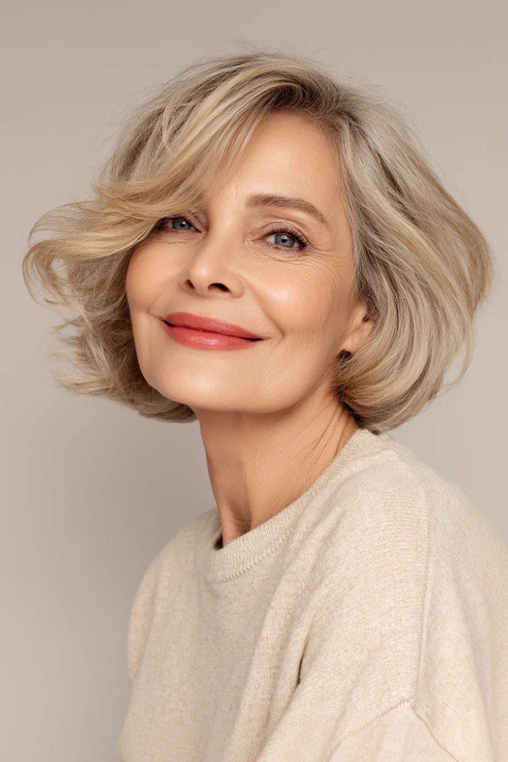 Klasikinis švelnaus bėžinio blondo bobas visada atrodo elegantiškai. Lengvi sluoksniai padeda plaukams kristi tolygiai, o pats atspalvis įvaizdį daro šviesesnį ir ramesnį.