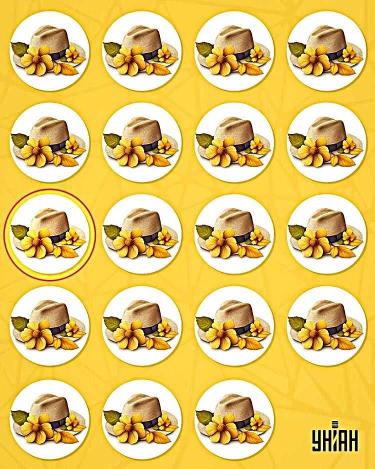 Štai teisingas atsakymas - kepurė su mažu lapeliu prie kaspino, kuris yra žalias, o ne geltonas kaip kiti, vadinama keista kepure.