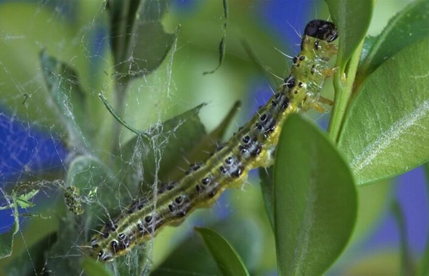 Mokslininkė Annette Herz iš Julius Kuhn Instituto Vokietijoje tyrinėja atbaidančias priemones – biologinius repelentus buksmedžių apsaugai nuo šio kenkėjo. Buvo tirti septyni eteriniai aliejai bei augalų ekstraktai. Geriausias besimaitinančių vikšrų atbaidymo efektas pastebėtas naudojant arbatmedžio ir paprastojo čiobrelio (Melaleuca alternifolia ir Thymus vulgaris) eterinių aliejų tirpalus. Pavyzdžiui krūmus apdorojus 1 proc. čiobrelio aliejaus suspensija, ji pilnai apsaugojo buksmedžius nuo kenkėjų kelias paras.