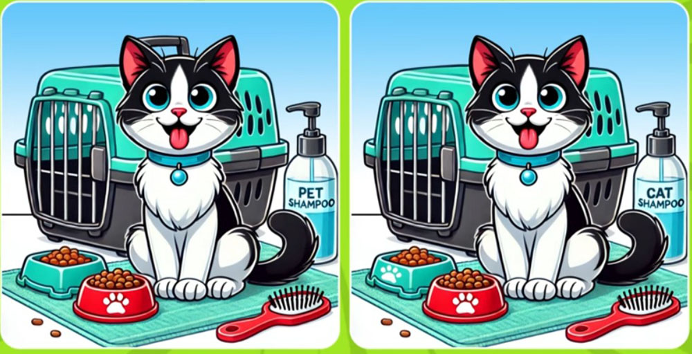Kilimėlis, šepetys ir keletas sausų granulių. Bet... trys detalės yra pakeistos. Ir tik patys pastabiausi jas pastebės per 20 sekundžių!