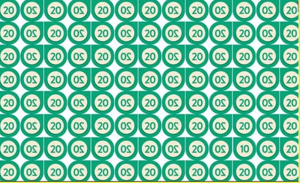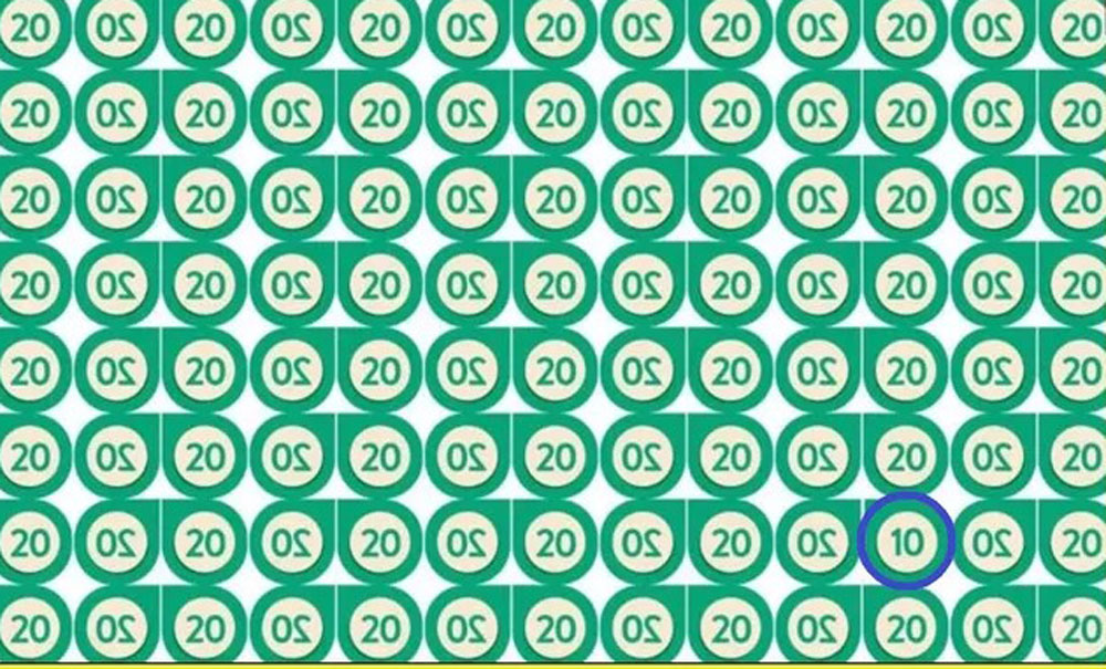 Vos per 10 sekundžių turėsite surasti vienintelį skaičių 10, kuris pasislėpė tarp daugybės skaičių 20. Tokios optinės iliuzijos ir vizualinės mįslės gerina koncentraciją bei padeda pailsėti nuo kasdienės rutinos. Ar esate pasiruošę patikrai?