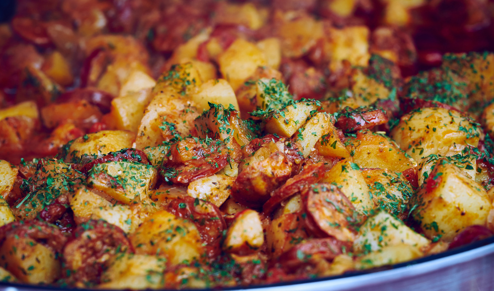 Jei vasaros vakarus mėgstate leisti gamtoje, jums patiks sotus, virš laužo liepsnos paruoštas troškinys, kurį pagardins ispaniška čioriso dešra.