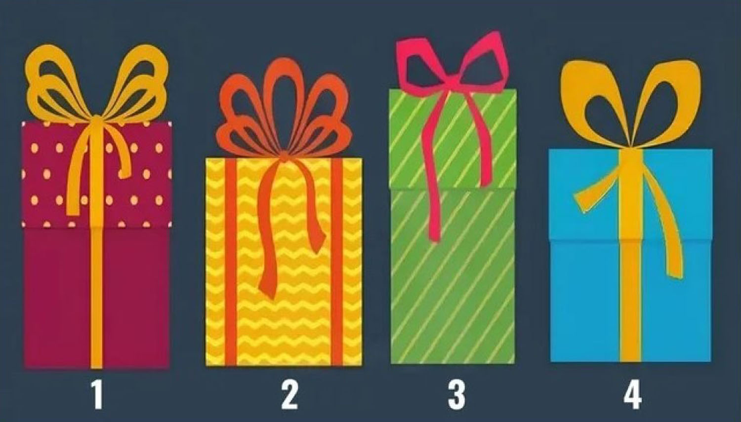 Prieš jus yra keturių dovanų paveikslėlis. Pasirinkite tą, kuri jus vizualiai labiausiai traukia.