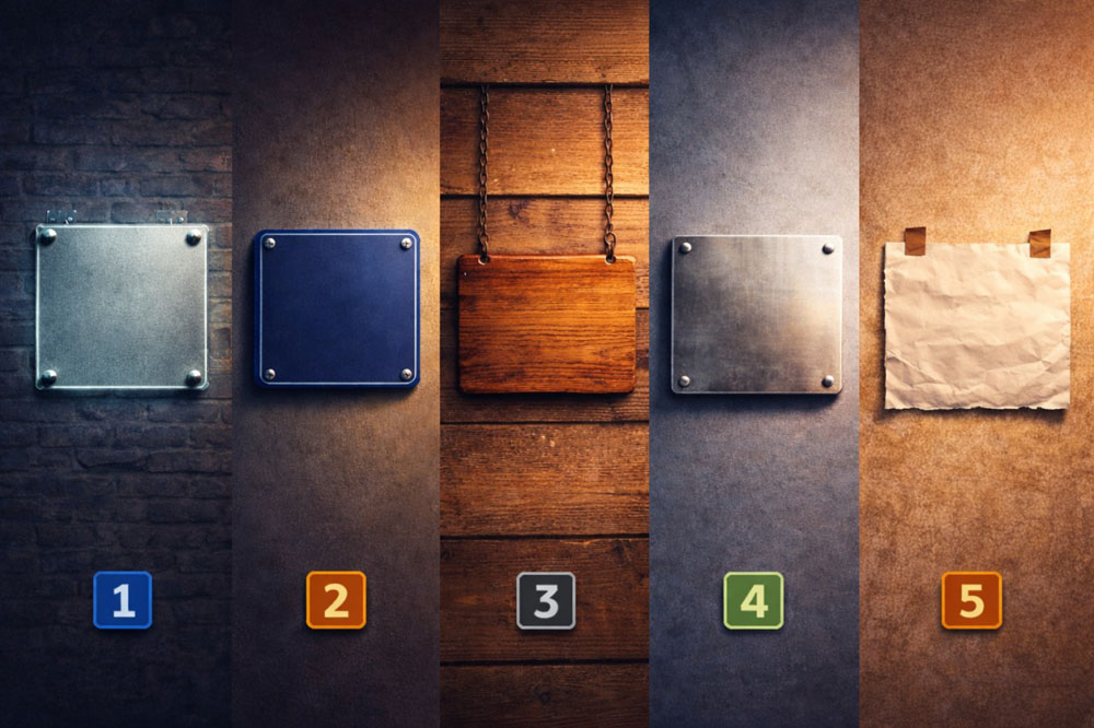 Pažiūrėk į atvaizdą su penkiomis iškabomis.