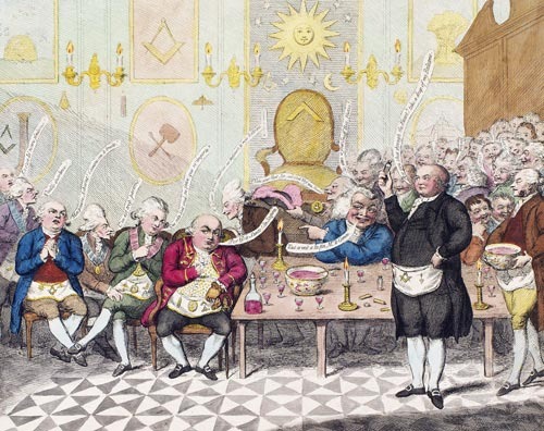 Kaliostro masonų susirinkime. XVIII a. knygos iliustracija.