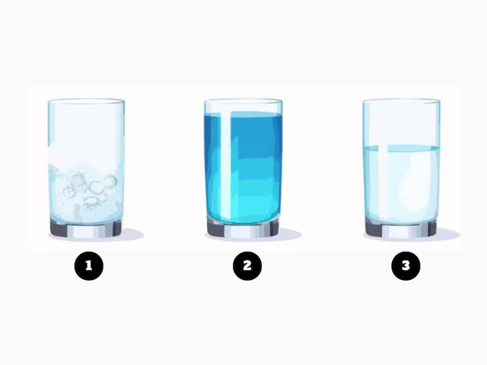 Paveikslėlyje matote tris stiklines su skysčiu. Nebandykite analizuoti, kuris iš jų yra „teisingas“. Tiesiog pasikliaukite intuicija ir pasirinkite tą, kuri pirmiausia patraukė jūsų dėmesį. Pasirinkote? Tada skaitykite paaiškinimą.