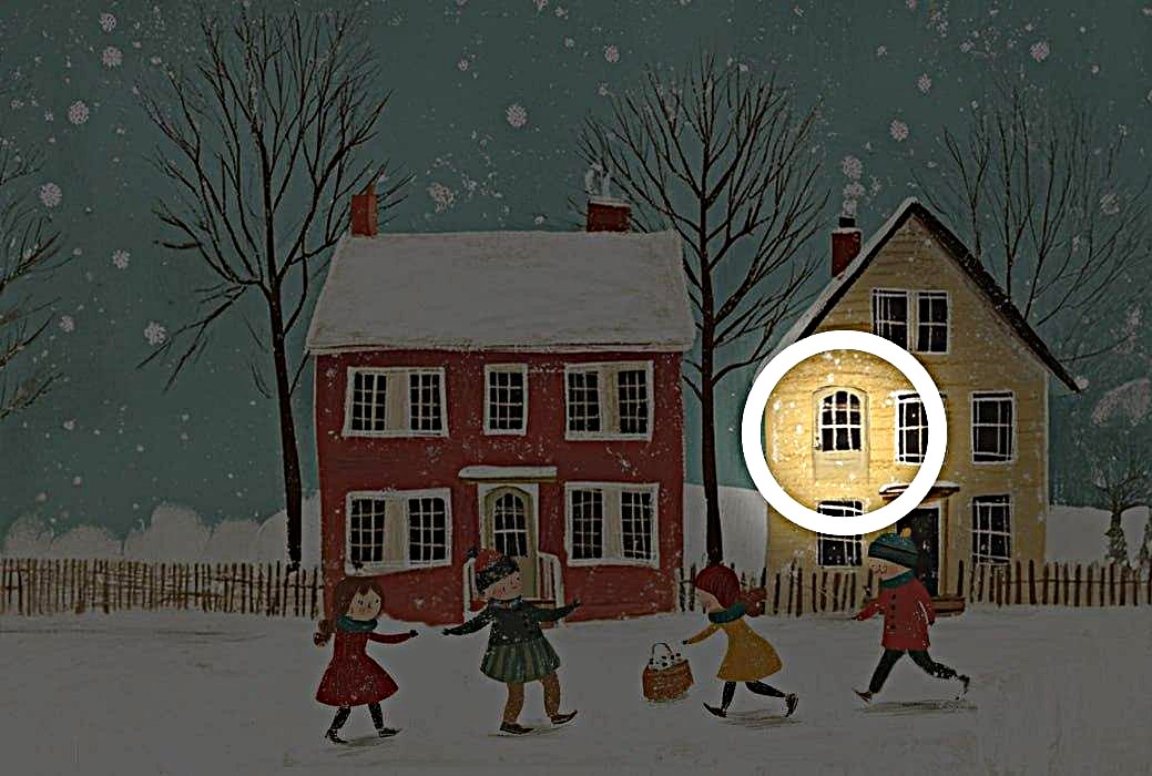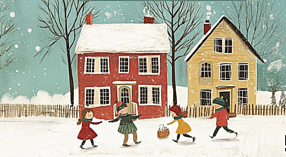 Taigi, pamatysite vaizdą, kuriame vaikai žaidžia snieguotame kieme.