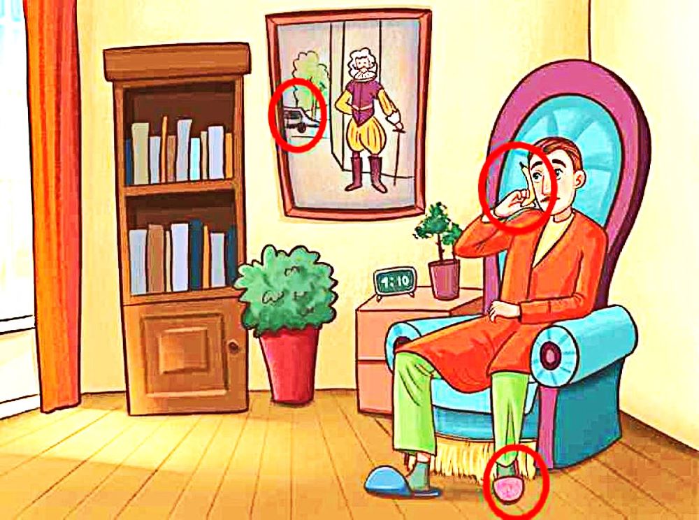 Jei įsižiūrėsite atidžiau, paaiškės, kad ne viskas piešinyje pavaizduota teisingai.