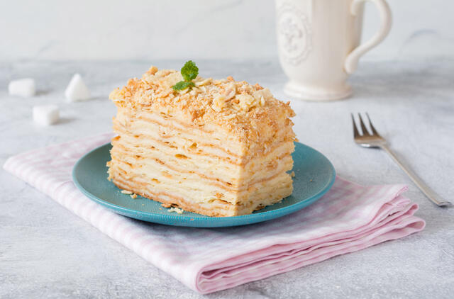 „Teisingas“ „Napoleono“ tortas yra toks švelnus, kad jo gabalėliai tiesiog tirpsta burnoje.