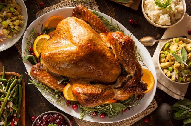 Tokiu atveju nuo pradžių kepkite kalakutą 180 laipsnių temperatūroje, o kaitrą padidinkite baigiant kepti – tik prieš tai prapjaukite rankovę, kad drėgmė išgaruotų ir odelė apskrustų“, – sako B. Baratinskaitė.