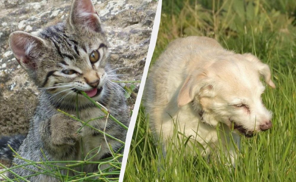 Manoma, kad katėms ir šunims nereikia valgyti žolės, bet nėra jokios realios būtinybės jiems tai drausti, be to, jiems tai gali net patikti.
