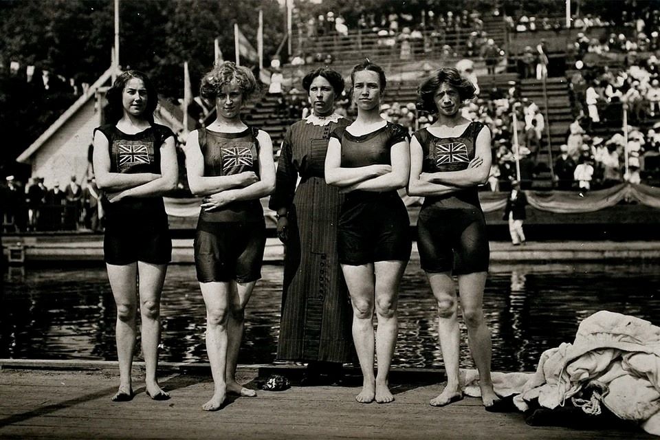 Kostiumo formatu „tank suit“ (pažodžiui: „kostiumas plaukimui dirbtiniame vandens telkinyje“) pasirodė Didžiosios Britanijos rinktinės sportininkės 1912 m. Stokholmo olimpinėse žaidynėse, kur pirmą kartą pristatytas moterų plaukimas: marškinėliai ir šortai merginoms sukėlė nemenką rezonansą, nes lengvabūdiškai atvėrė kūną (žinoma, pridėjo merginoms manevringumo ir aerodinamikos).