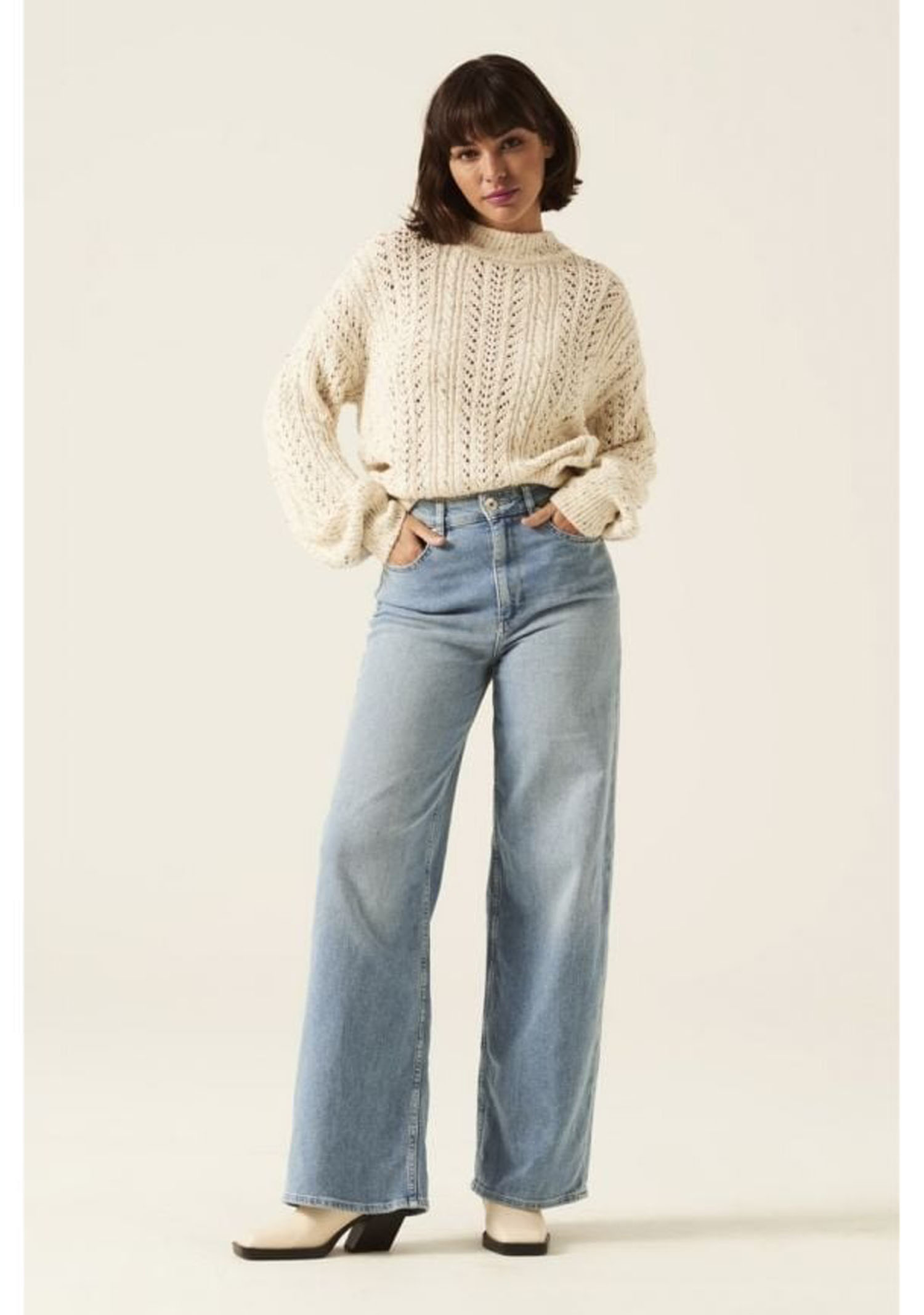 Todėl galite tikėtis šių džinsų dar penkerius metus ir nebijoti, kad jie išeis iš mados. Platėjantys džinsai yra mėgstamiausias visų prancūzų fashionistų modelis, nes su jais galima susikurti elegantišką įvaizdį visomis progomis. Tokias kelnes geriausia dėvėti su aukštakulniais bateliais, įvaizdį paryškinant rudu odiniu dirželiu.