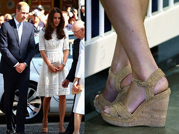 Hercogienė taip pat mėgsta batus su platforma, tiksliau, su kamštine platforma. Monsoon, Pied a Terre ir Stuart Weitzman – Kate mėgstamiausios firmos.