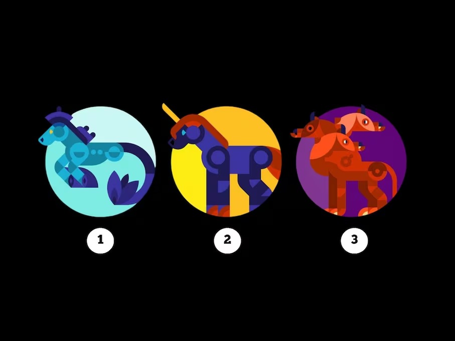 Prieš tave – trys mitiniai padarai: jūrų arkliukas, vienaragis ir cerberis. Tiesiog pasirink tą, kuris pirmasis patraukė tavo dėmesį.