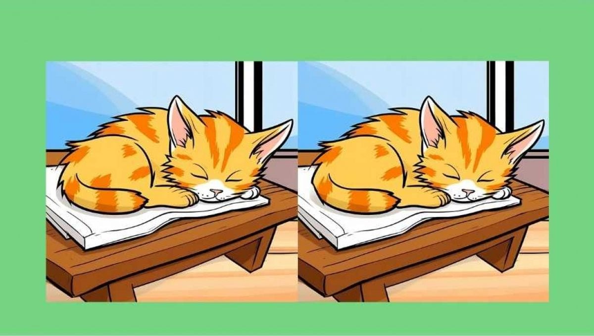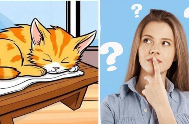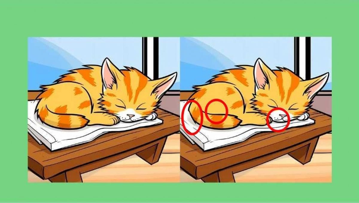 Šiame galvosūkyje reikia rasti tris skirtumus tarp dviejų miegančio katino paveikslėlių.