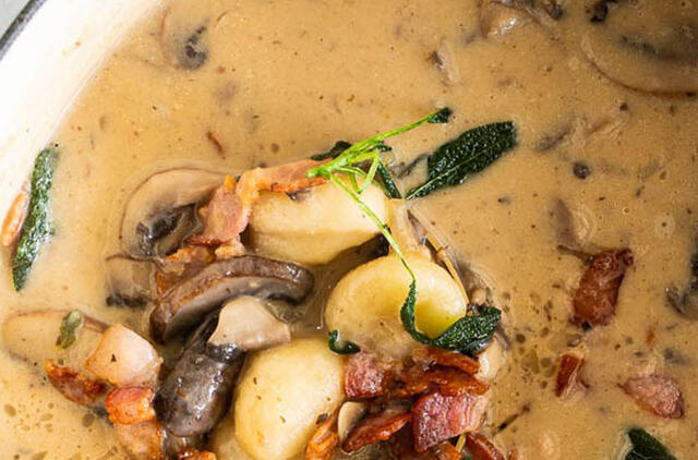 Įsimylėsite šią kreminę gnocchi sriubą su šonine ir grybais. Ši sriuba jus sušildys šaltą rudens vakarą.
