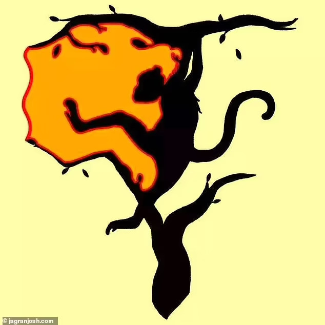 Juoda figūra geltoname fone kviečia žiūrovus pagalvoti, kurį gyvūną jie pamato pirmiausia – beždžionę ar tigrą.