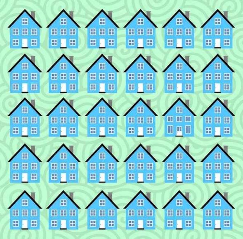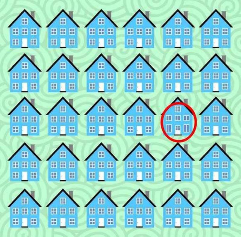 Matome daugybę namų, kurie iš pirmo žvilgsnio yra vienodi. Tačiau kažkur tarp šių namų eilių yra vienas namas, kuris skiriasi. Turime jį greitai surasti.