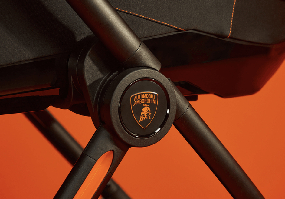 Vežimėlyje gausu kruopščiai apgalvotų detalių – nuo „aukštos kokybės zomšos“ iki itališkos odos akcentų, papildytų „Automobili Lamborghini“ firminės oranžinės spalvos blyksniais, išryškinančiais juodus audinius.