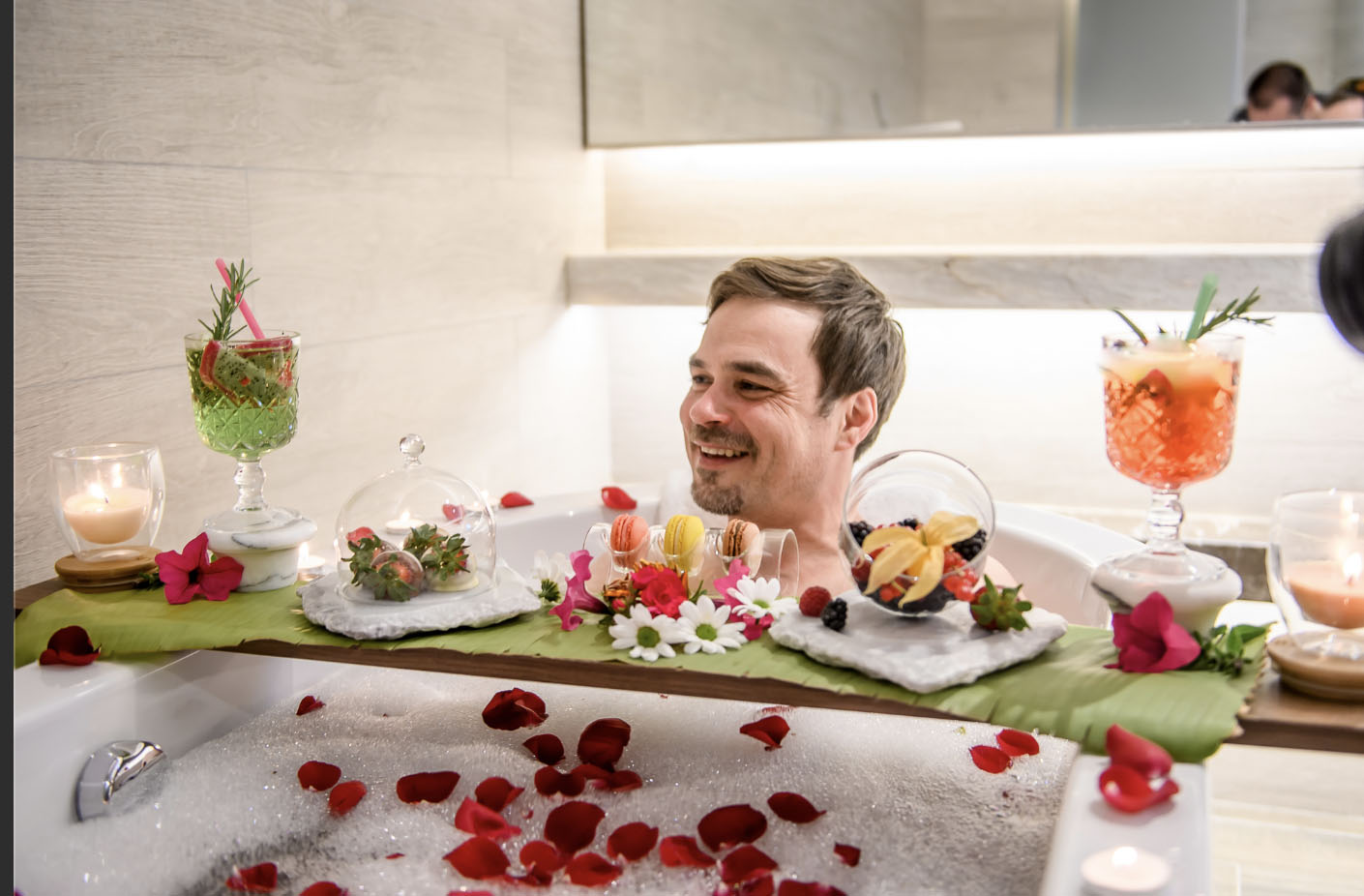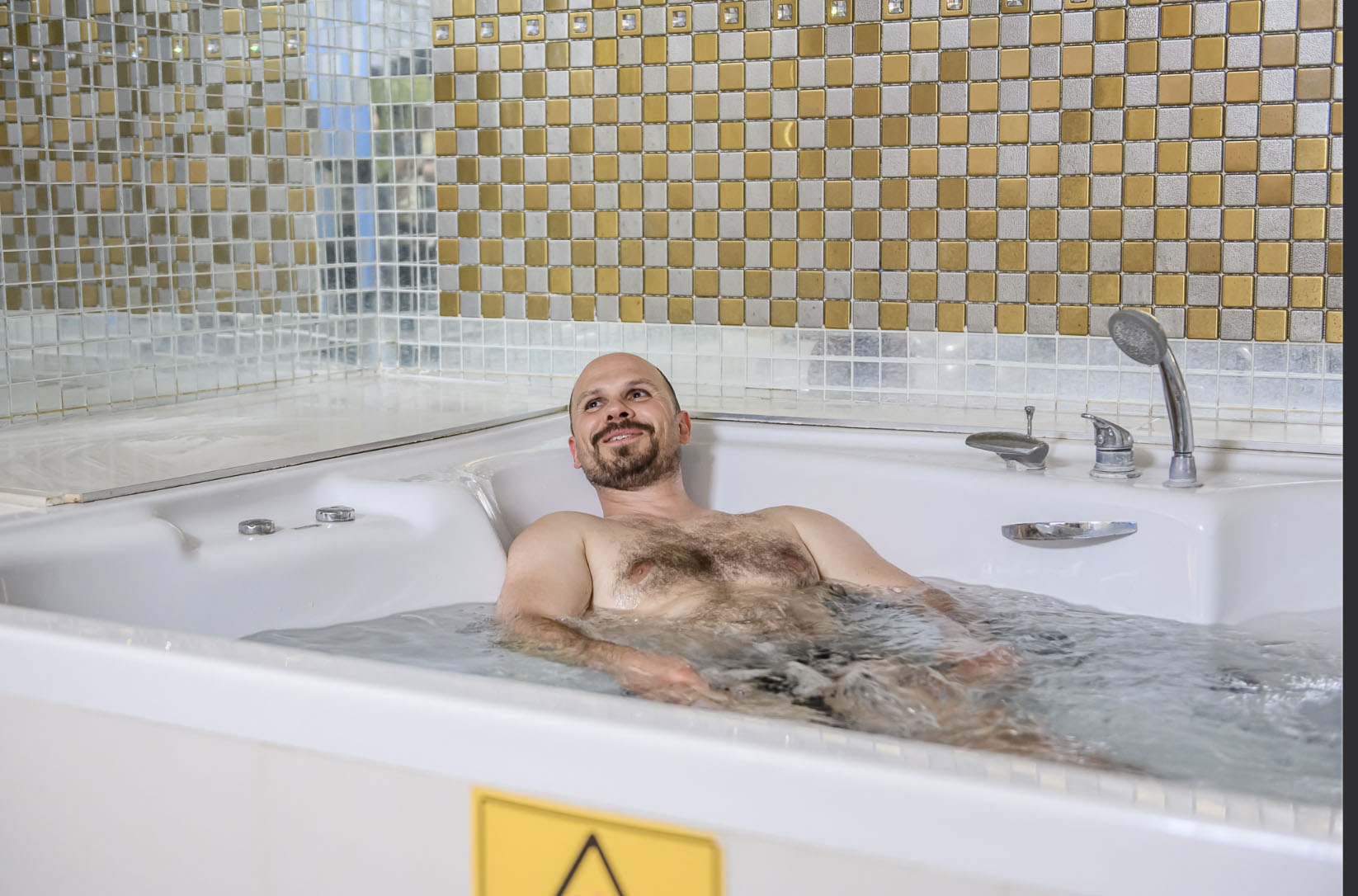 Išėjus iš karštųjų patalpų reikia nusiprausti po dušu, arba, kaip aš, sukūrinėje vonioje, ir tik tuomet būsite palydėti į pagrindinę pirties komplekso dalį.