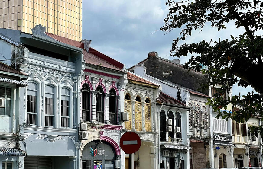 Įsikūręs Penango saloje Malaizijoje, miestas turi turtingą ir įdomią istoriją. 1786 m. jį įkūrė kapitonas Francis Light'as, dirbęs britų Rytų Indijos bendrovei, ir pavadino Didžiosios Britanijos karaliaus Jurgio III garbei. Tai buvo pirmoji britų gyvenvietė Pietryčių Azijoje, tapusi svarbiu prekybos uostu Malakos sąsiauryje. Dėl savo strateginės padėties miestas pritraukė migrantų iš Kinijos, Indijos, Malajų archipelago ir kitų pasaulio vietų, taip sukurdamas unikalų kultūrų ir religijų mišinį.
