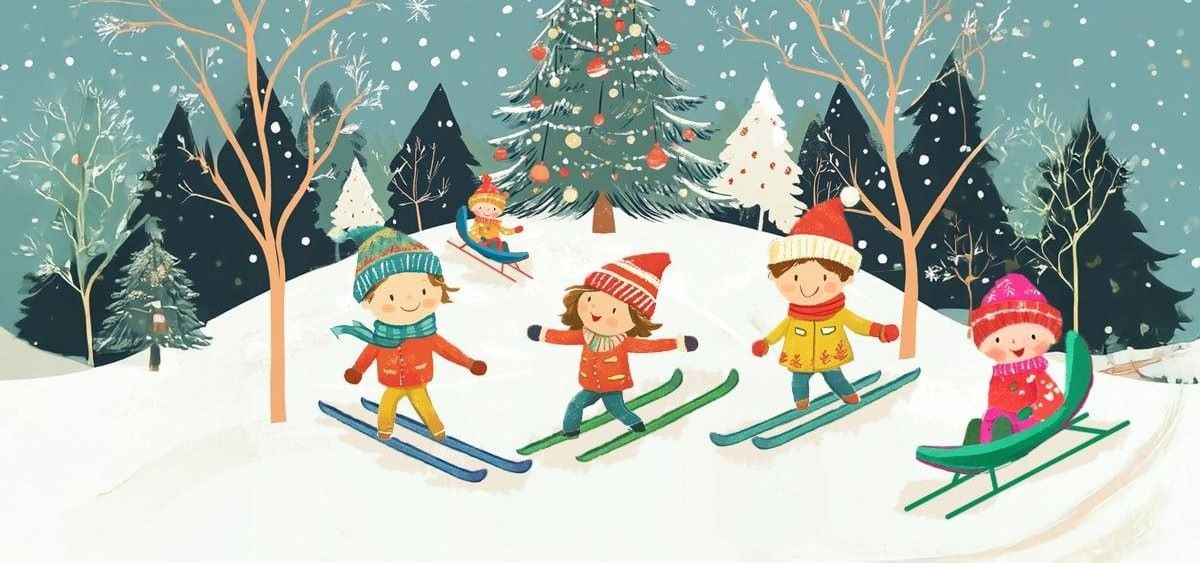 Mažieji rogutėmis čiuožia, o jų vyresnieji draugai slidinėja.