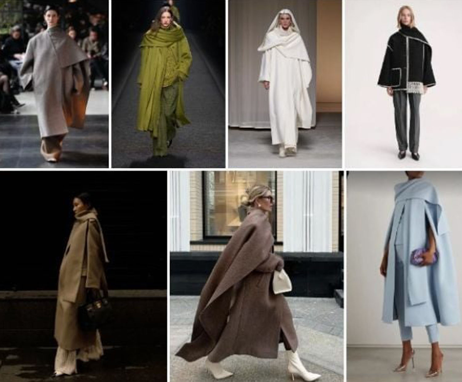 Šį sezoną taip pat bus madinga asimetrija, drapiruotės, platūs paltą papildantys šalikai ir vertikalūs dryžiai - geriausias būdas pailginti siluetą.