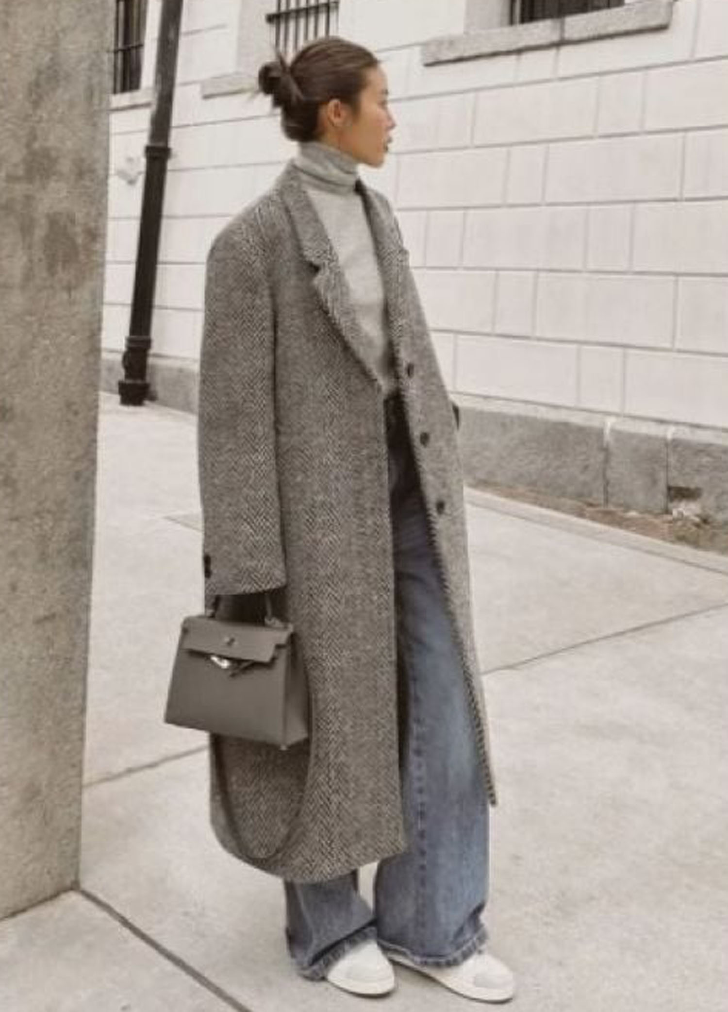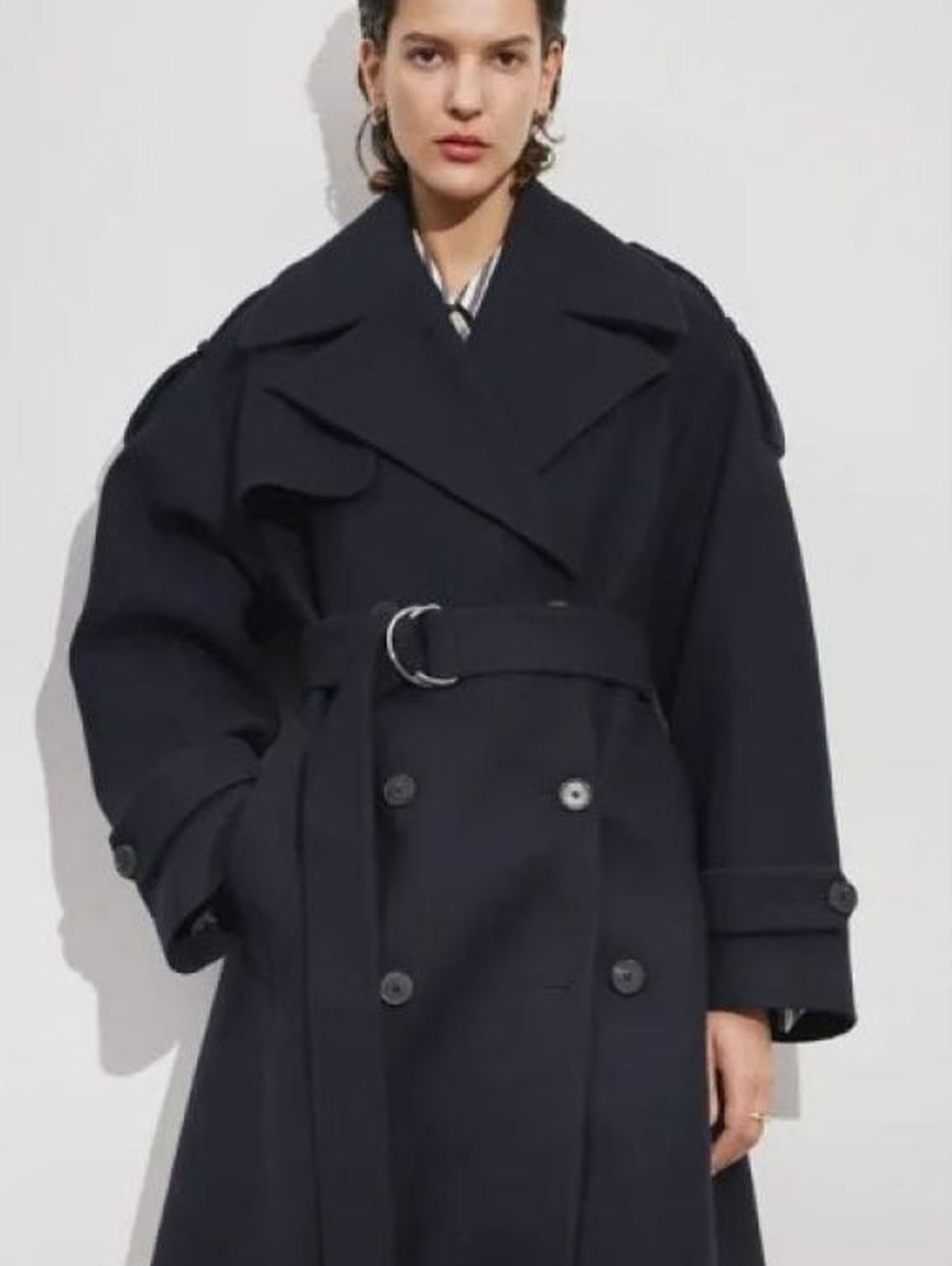 Tarp madingiausių 2024 m. paltų - klasikinis angliškas paltas su sagtėmis.
