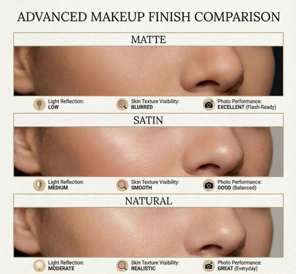 Norint, kad makiažas būtų patvarus, svarbu pasirinkti tinkamą tonalinį kremą. Arina rekomenduoja rinktis matines tekstūras. Jos pasižymi didesniu atsparumu, net jei oda yra mišri arba riebi. Matinis pagrindas laikosi kur kas geriau nei priemonės, suteikiančios spindesio ar natūralaus drėgmės efektą.