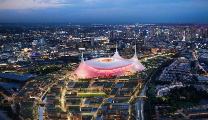 Pats Normanas Fosteris paaiškino savo idėją: „Stadioną supa didžiulis skėtis, kuris surenka energiją ir lietaus vandenį ir saugo naują viešąją erdvę, kuri yra dvigubai didesnė už Trafalgaro aikštę.