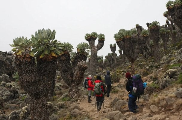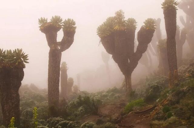 Ten, aukštai virš jūros lygio, auga milžiniškas kryžmažiedis (Dendrosenecio kilimanjari) - keistas, niekur kitur planetoje nerandamas augalas.