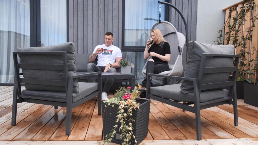 Vidiniame jaukaus namuko kieme Natalija su vyru įsirengė ir erdvią terasą jaukioms popietėms su grilio patiekalais ar vakarams draugų kompanijoje.