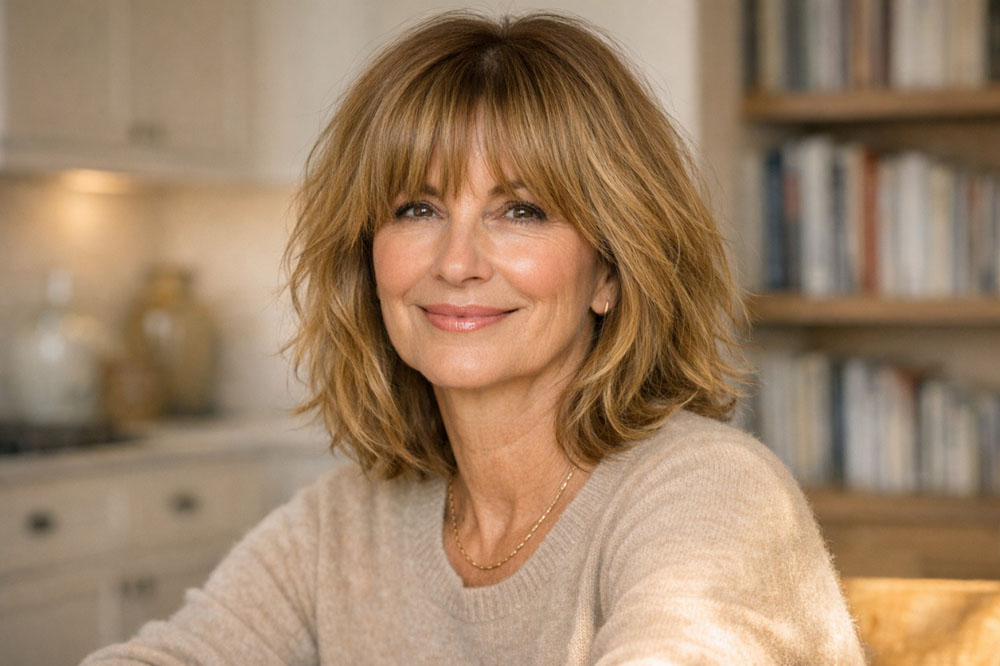 Šis kirpimas prideda oro, judesio ir apimties ten, kur su amžiumi jos dažnai pritrūksta – smilkinių zonoje ir prie veido. Užuolaidiniai kirpčiukai veikia kaip gražus rėmelis.