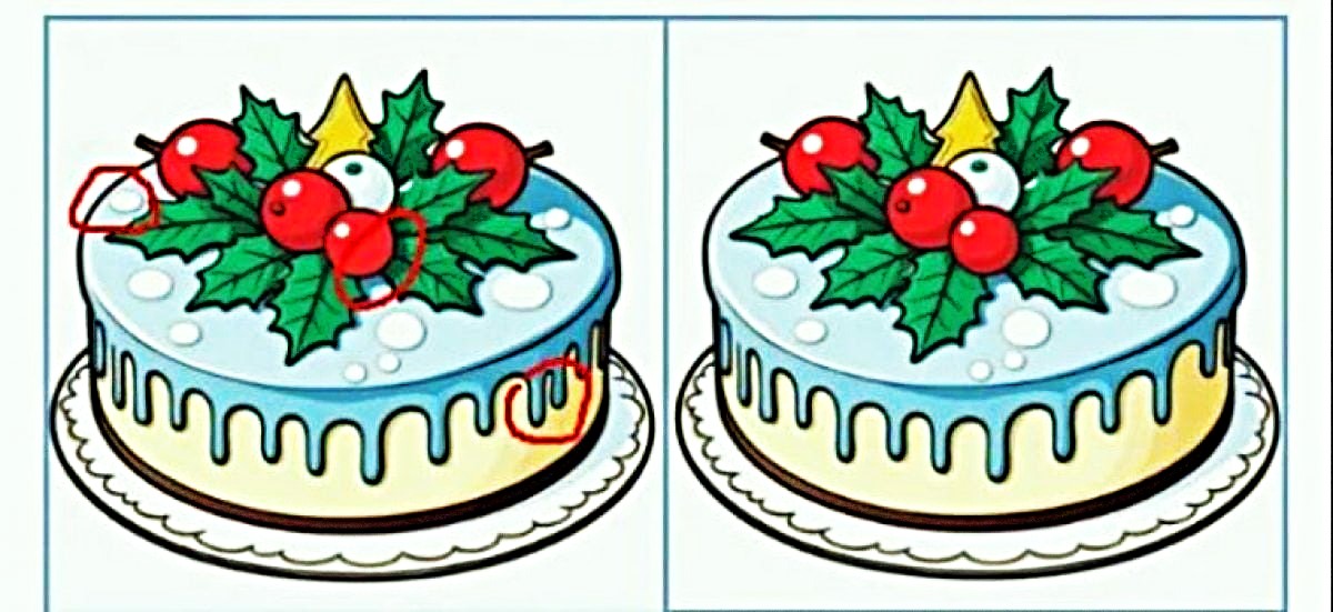 Ar galite per minutę rasti tris skirtumus tarp dviejų pyragų?