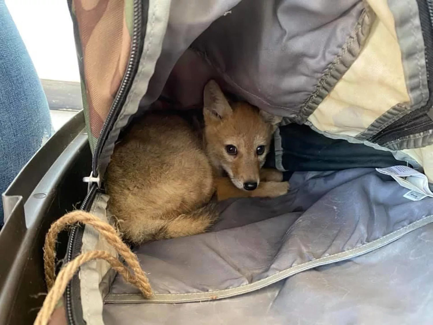 Kai Justinas pagaliau pasiekė vietą, kur veikė mobilusis ryšys, jis nedelsdamas paskambino savo žmonai ir pranešė, kad išgelbėjo dviejų mėnesių kojotą. Netrukus jam pavyko susisiekti su vietine organizacija, užsiimančia laukinių gyvūnų gelbėjimu, ir buvo organizuotas Yip-Yip perkėlimas į reabilitacijos centrą.