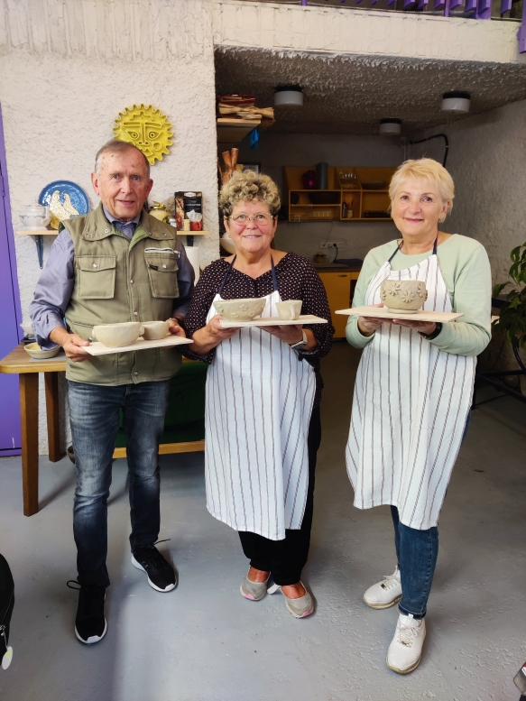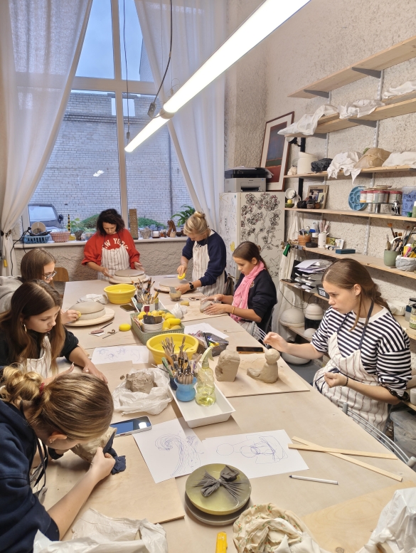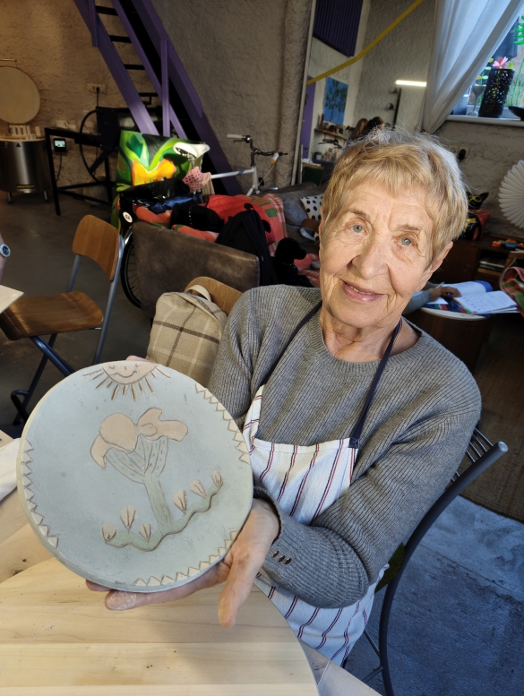 Šiandien pirmą kartą pabandžiau kurti keramiką ir tai labai patiko. Tik, žinoma, jaučiasi, kad laikas ribotas – norisi suspėti, kartais atsiranda įtampos. Vis dėlto pati veikla rami, maloni, suteikianti daug džiaugsmo. Labai džiaugiuosi, kad atėjau – čia gera aura, draugiška atmosfera, o mokytojai puikiai paaiškina ir padrąsina.“