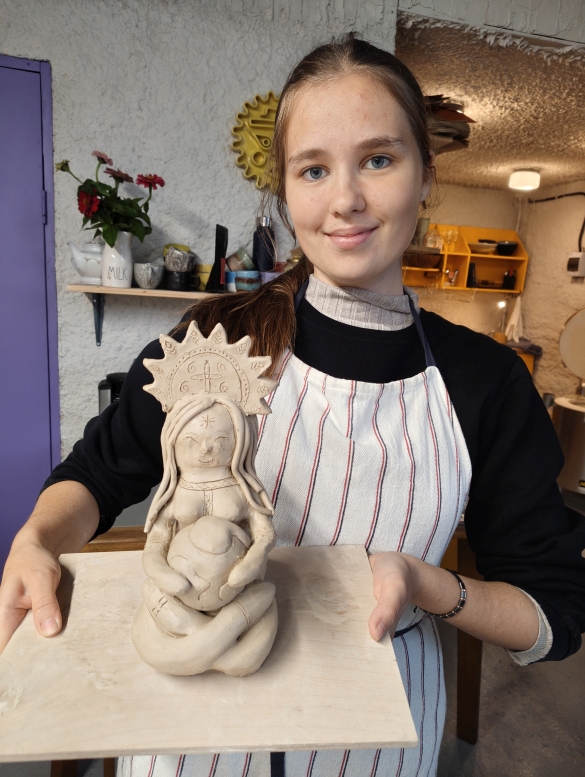 „Pirmą kartą dirbu su moliu. Iš pradžių atrodė sunku, bet greitai įsitraukiau – man patinka, kad galiu sukurti kažką gražaus savo rankomis. Keramika ramina ir leidžia atsipalaiduoti po mokyklos.“