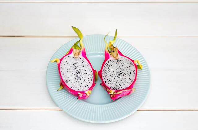 Pirmiausia drakono vaisius ir ananasus apšlakstykite aliejumi bei aitriaisiais čili prieskoniais, tuomet suverkite ant iešmelio ir pakepkite orkaitėje arba kepsninėje, sako J. Sabaitienė ir dalijasi dar keliais receptais, kuriuose panaudosite drakono vaisius.