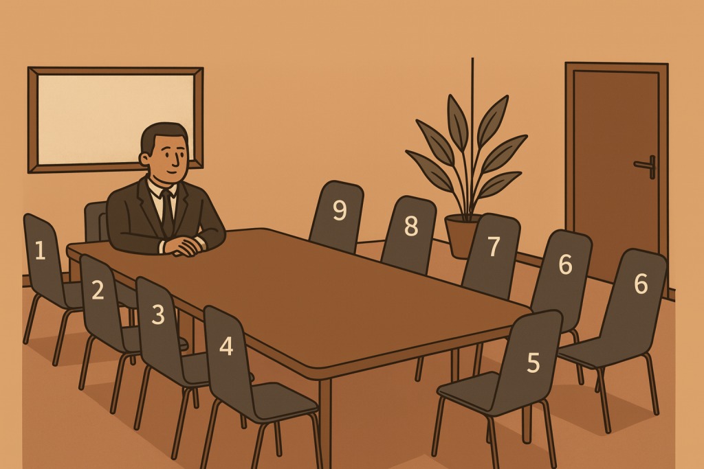 Sąvoka paprasta: pasirinkite vietą prie stalo. Pagal pasirinktą poziciją atskleidžiamos jūsų bendravimo stiliaus savybės, požiūris į autoritetą ir vaidmuo komandoje.