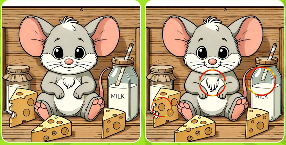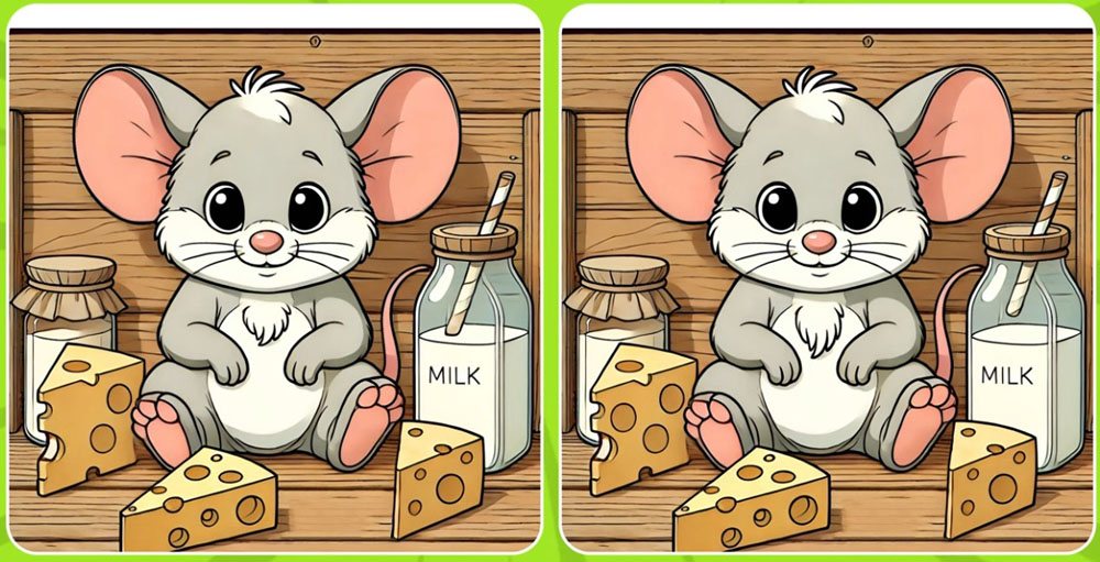 Dviejuose beveik identiškuose paveikslėliuose pasislėpė klastingi skirtumai. Šiame sūrio ir pieno rojuje jūsų laukia trys mažos mįslės, kurių neįveiktų net katinas.