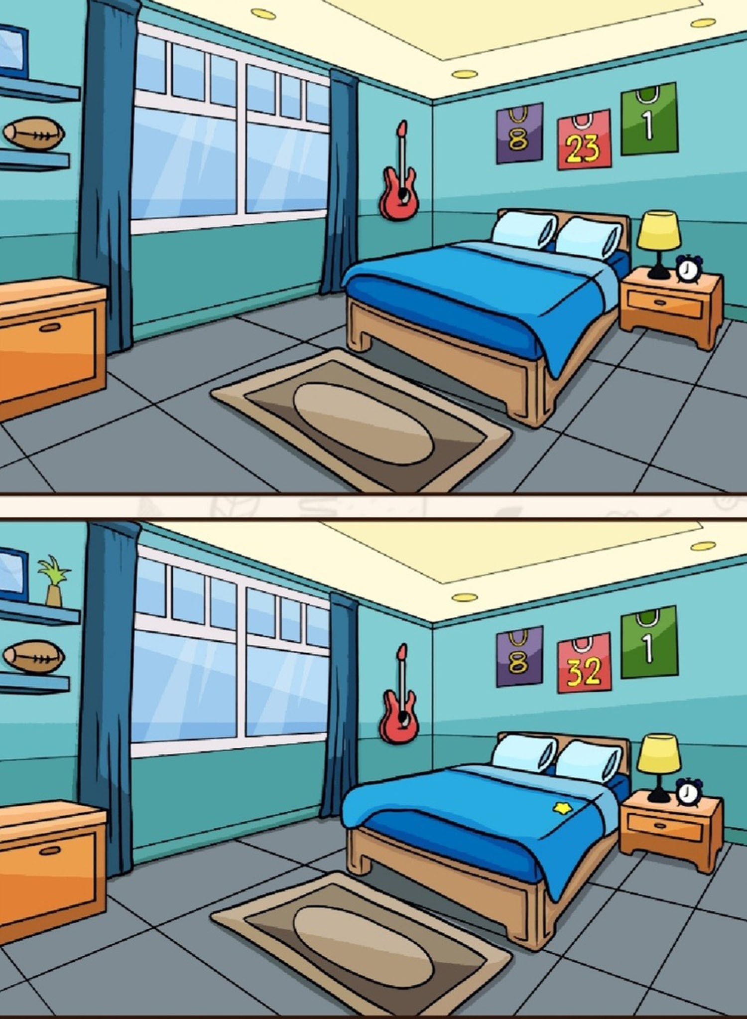 Atrodo kaip kokios nors sporto įžymybės kambarys...... Surask 5 skirtumus paveikslėlyje.