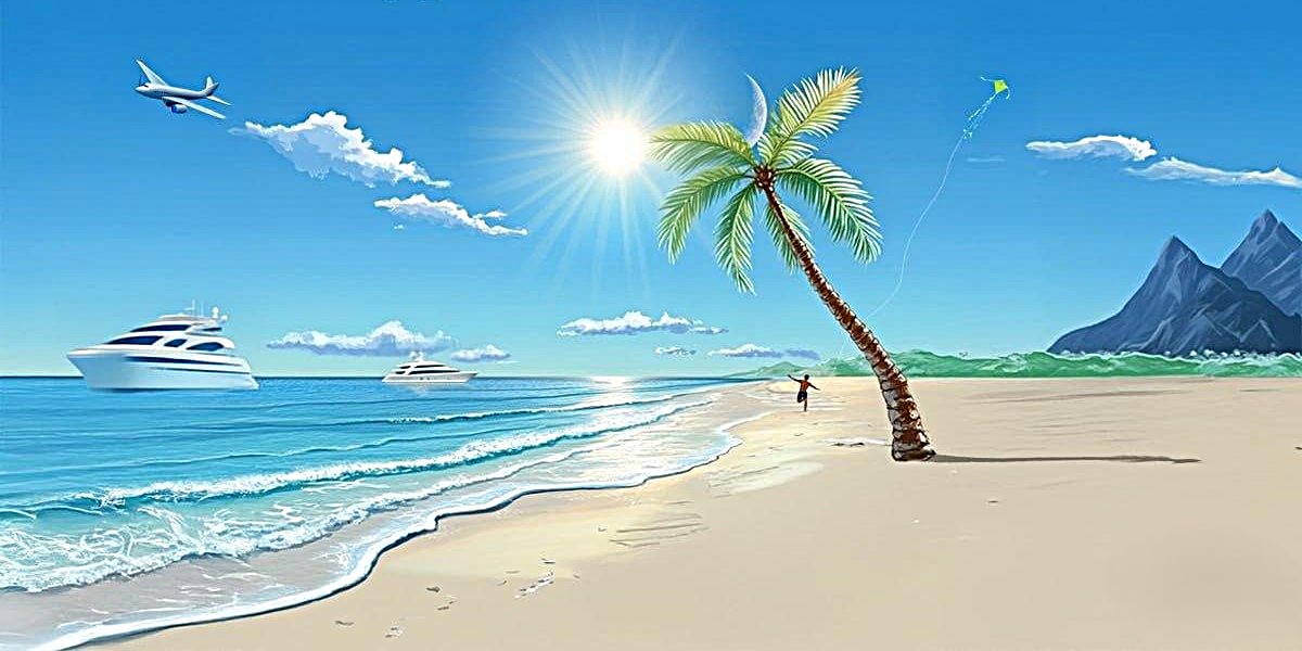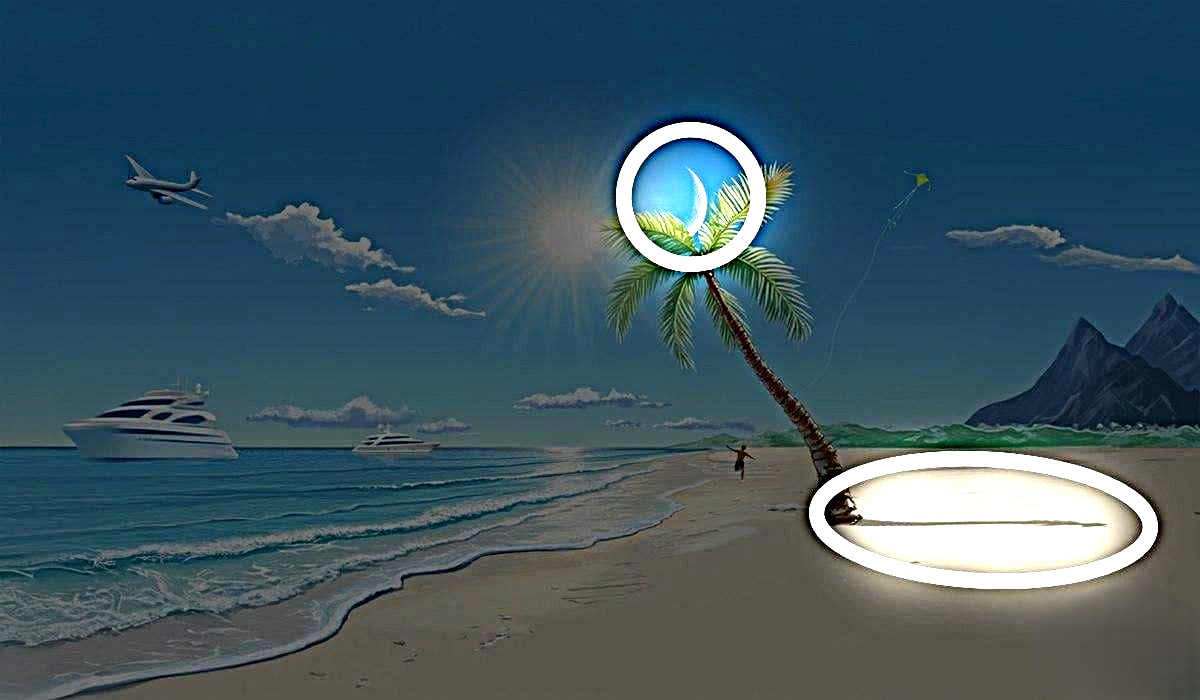 2 klaida - palmės šešėlis yra per daug keistas - jis atsispindi tik nuo medžio kamieno, bet ne nuo lapų, be to, yra netinkamos krypties Saulės atžvilgiu.