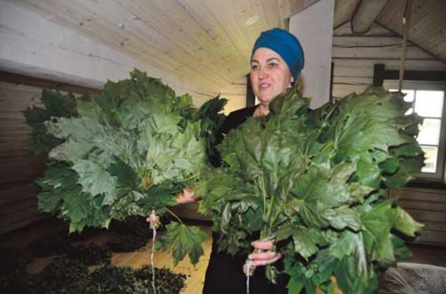 „Pradedu nuo ievų, paskui naudoju žilvitį, blendę, karklą. Beje, karklų yra labai daug rūšių, ir visų lapai – skirtingi. Rišu iš beržų, liepų, klevų. Šie metai yra trylikti, kai pirtininkauju“, – dalinosi Vaida, prisiminusi pirmąsias klientes iš Plungės, su kuriomis iki šiol draugiškai bendrauja.