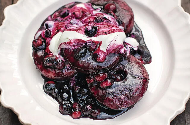Nuostabiosios mėlynės, ryški spalva - tai pusryčių spurgos, kurios praturtins organizmą vitaminu C.