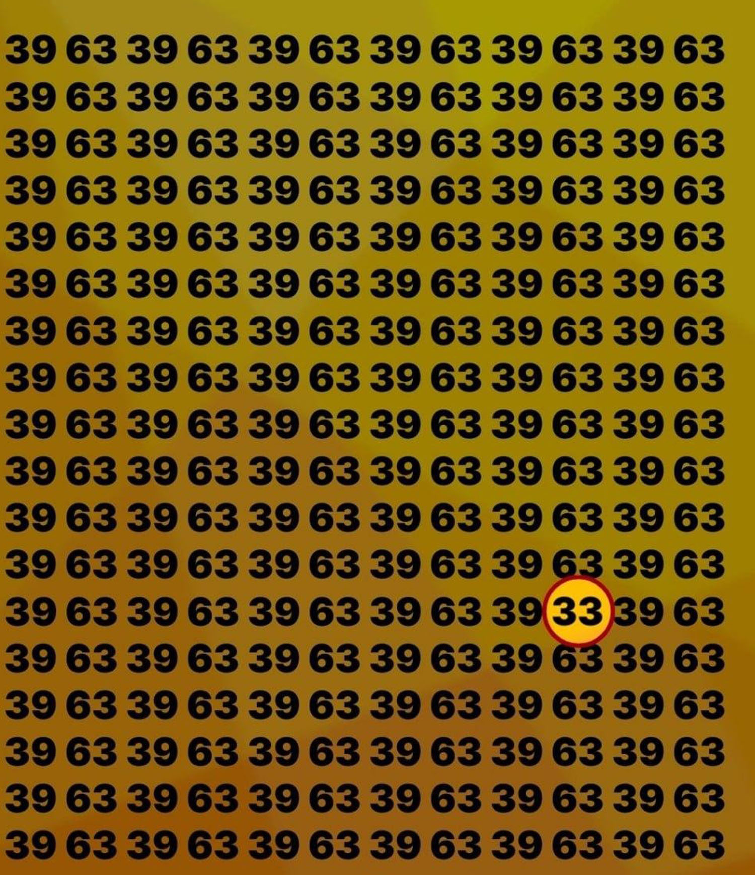 Ar esate pasirengę išbandyti savo regėjimą ir pastabumą? Tuomet ši užduotis skirta jums. Toliau matysite paveikslėlius su skirtingais skaičiais. Jūsų užduotis - surasti tarp jų ypatingą skaičių (33).