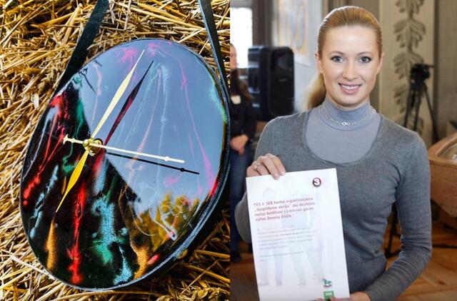 Jeigu nori užklijuoti skaitmenis, juos irgi lieju iš dervos. Laikrodį reikia šlifuoti, poliruoti, lyginti. Gali užtrukti net ir mėnesį laiko, tai tikrai nėra paprasta“, – pasakoja Renata Norvilė.